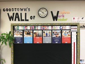Goodtown’s wall of wisdom, work and wonder: this wall highlights the wisdom, work and wonders of goodtown residents. It also boasts our class motto, the Goodtown power meter, and reference posters for the school-wide 6 c’s.