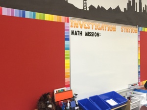 investigation station: this is our math wall for student work, strategies, posters, vocabulary, math mission, etc.